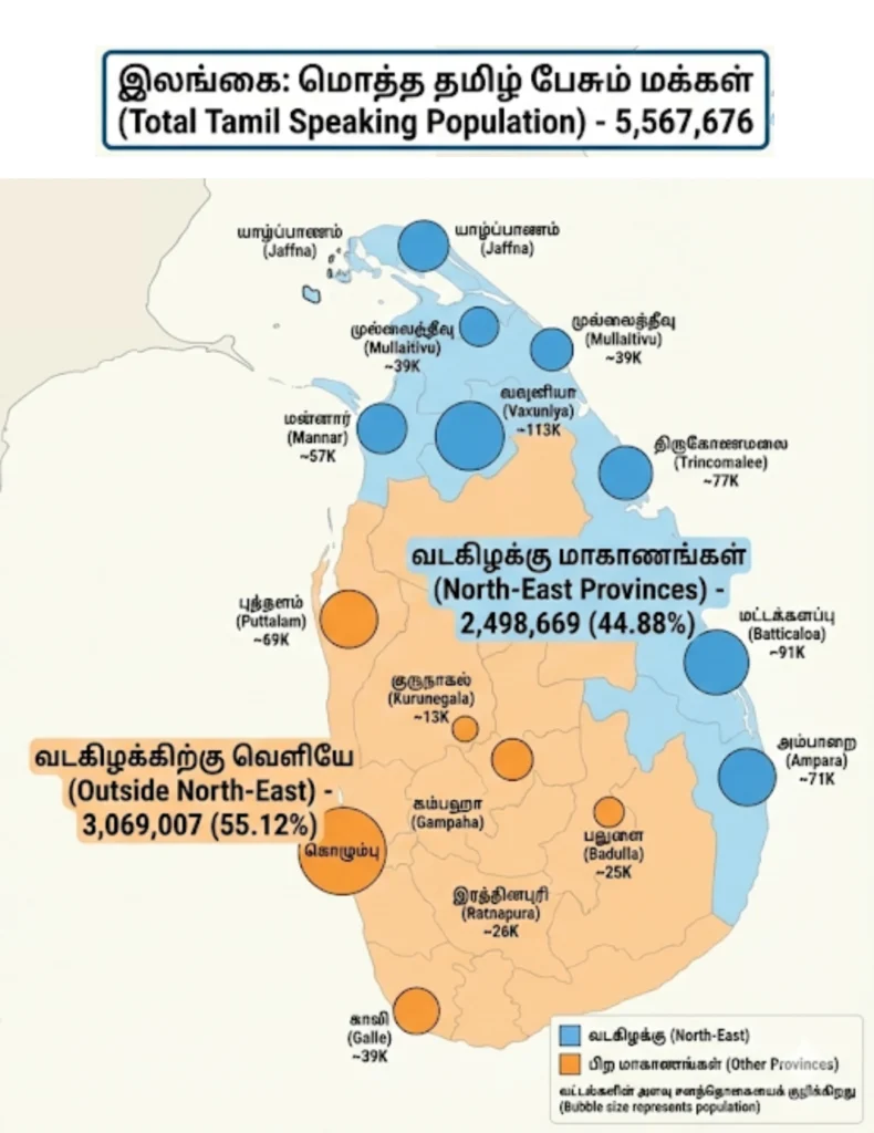 வடகிழக்கில் வாழும் தமிழ் பேசும் மக்களின் சதவீதம் 44.88% மட்டும் ஆகும்.