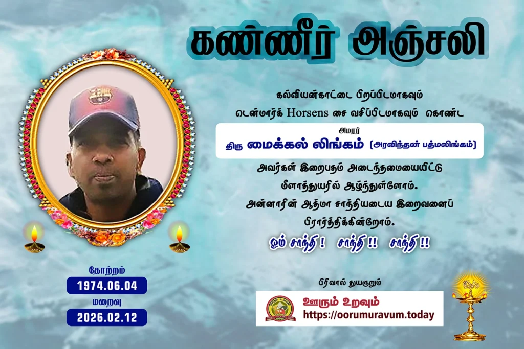 திரு மைக்கல் லிங்கம், மாசி மாதம் 12 ஆம் திகதி 2026 அன்று காலமானார். இலங்கையின் யாழ்ப்பாணம் கல்வியன்காட்டில் பிறந்த இவர், பின்னர் டென்மார்க் Horsens இல் வசித்து வந்தார்.